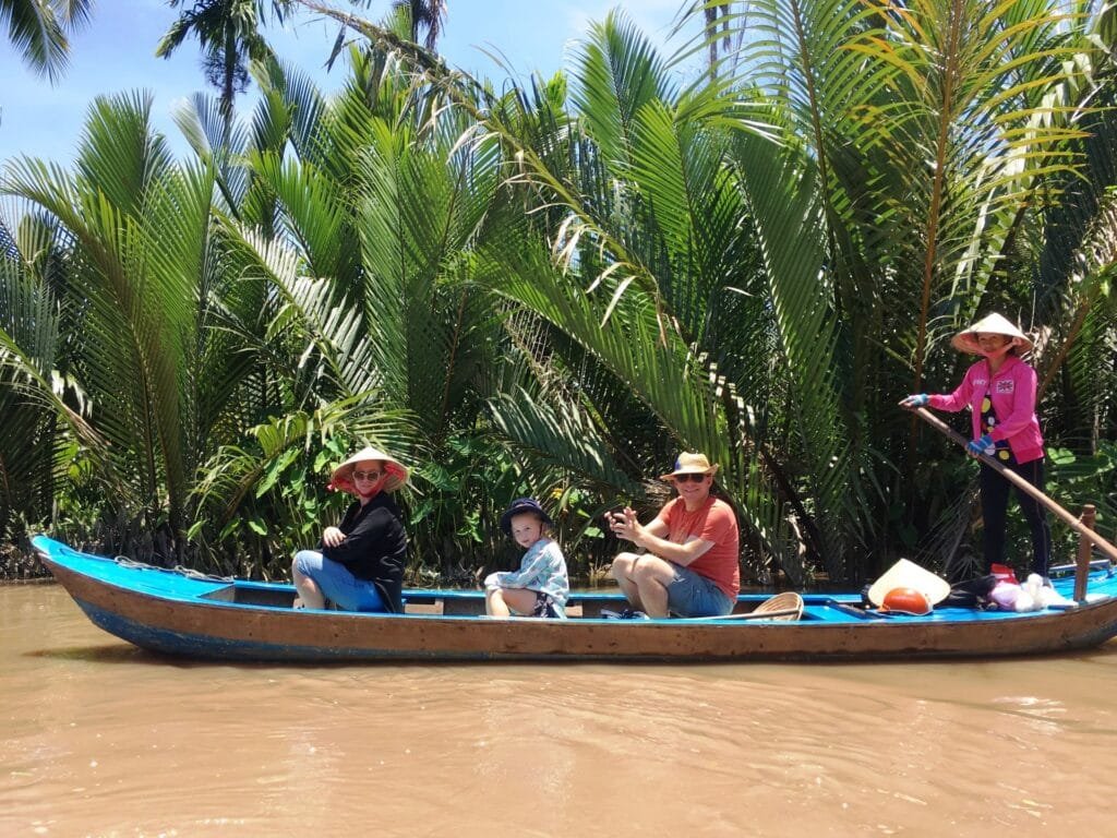 Mekong Delta is naturally carpeted in a dizzying array of greens. This is a water world where floating houses, boats and markets float upon the innumerous canals, rivers, and streams that intersect on the landscape like arteries.